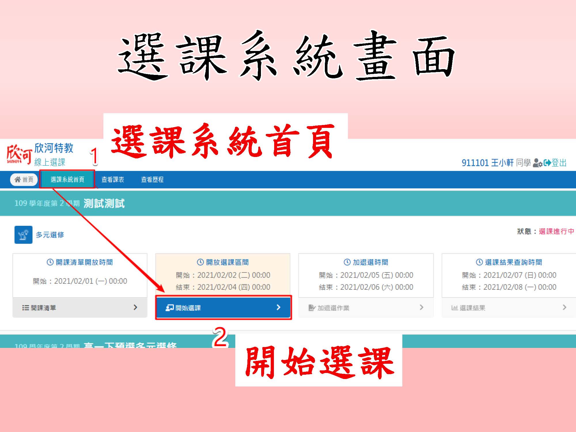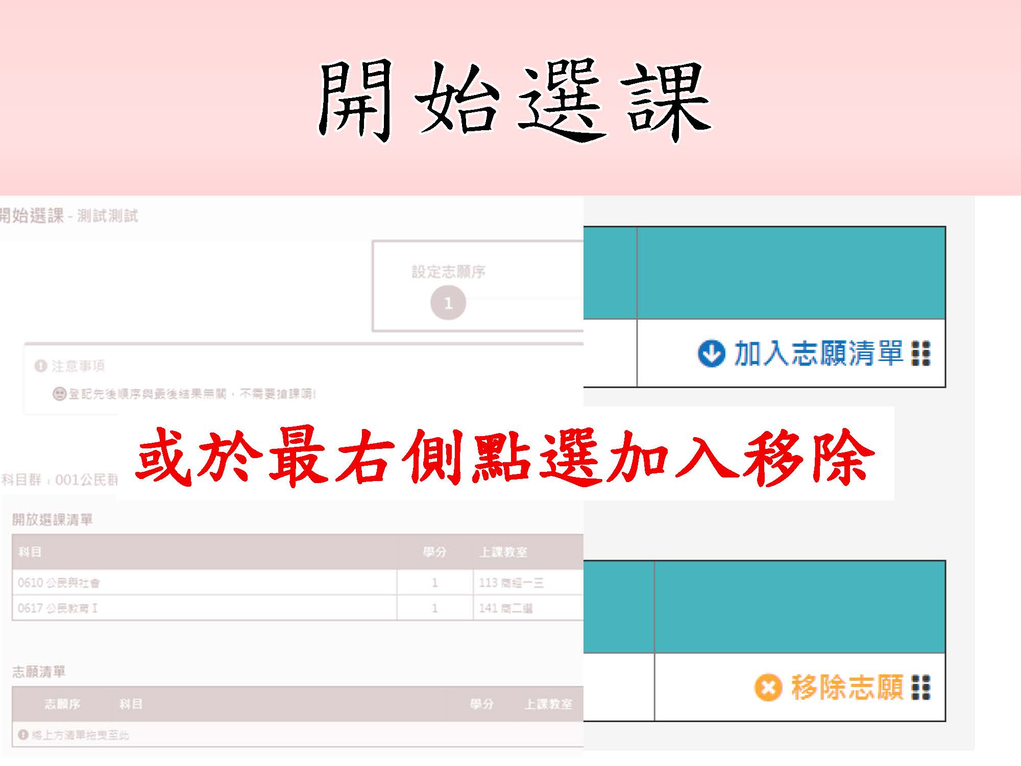 ¿請詳閱以下「選課流程」及「選課注意事項」後,於選課時間內儘速上網選課。