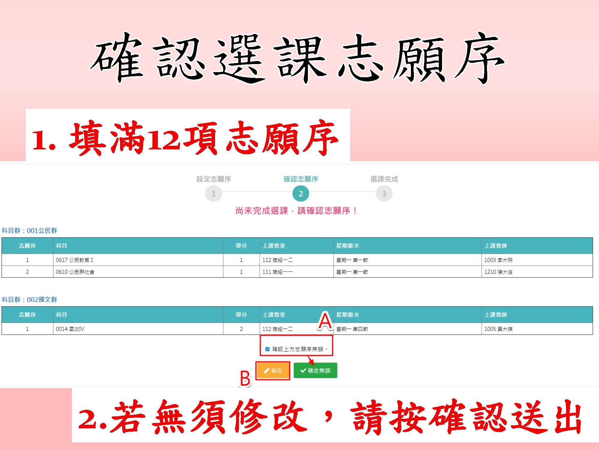 ¿選課班級:高二全