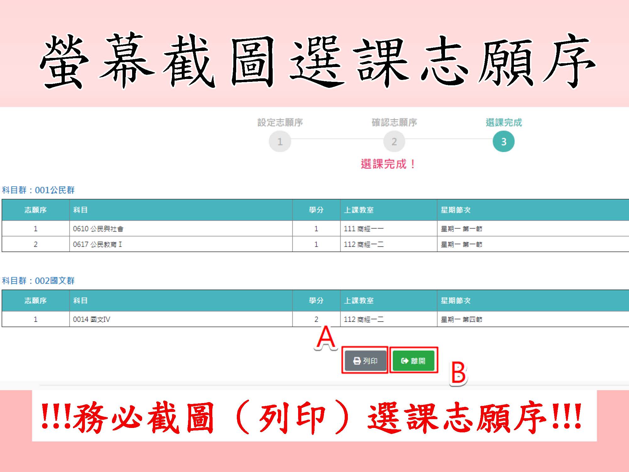 ¿請盡量用【電腦】選課,以確保選課狀況無誤差。