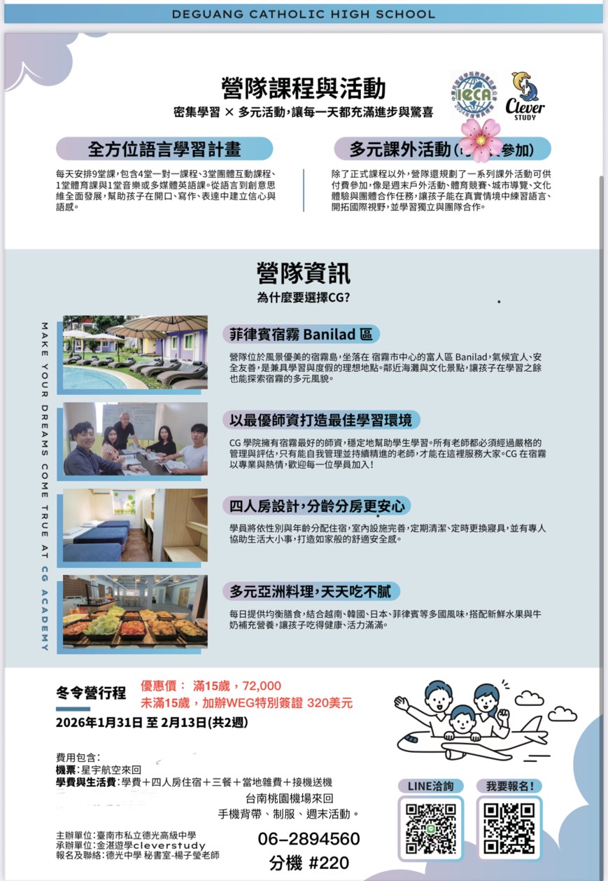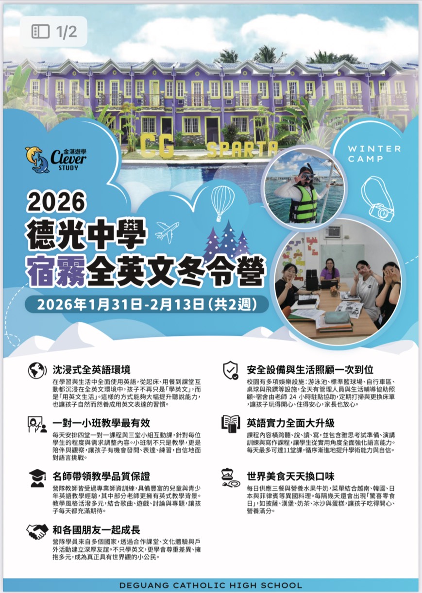 菲律賓宿霧冬令營: 115年1/31~2/13(共14天)