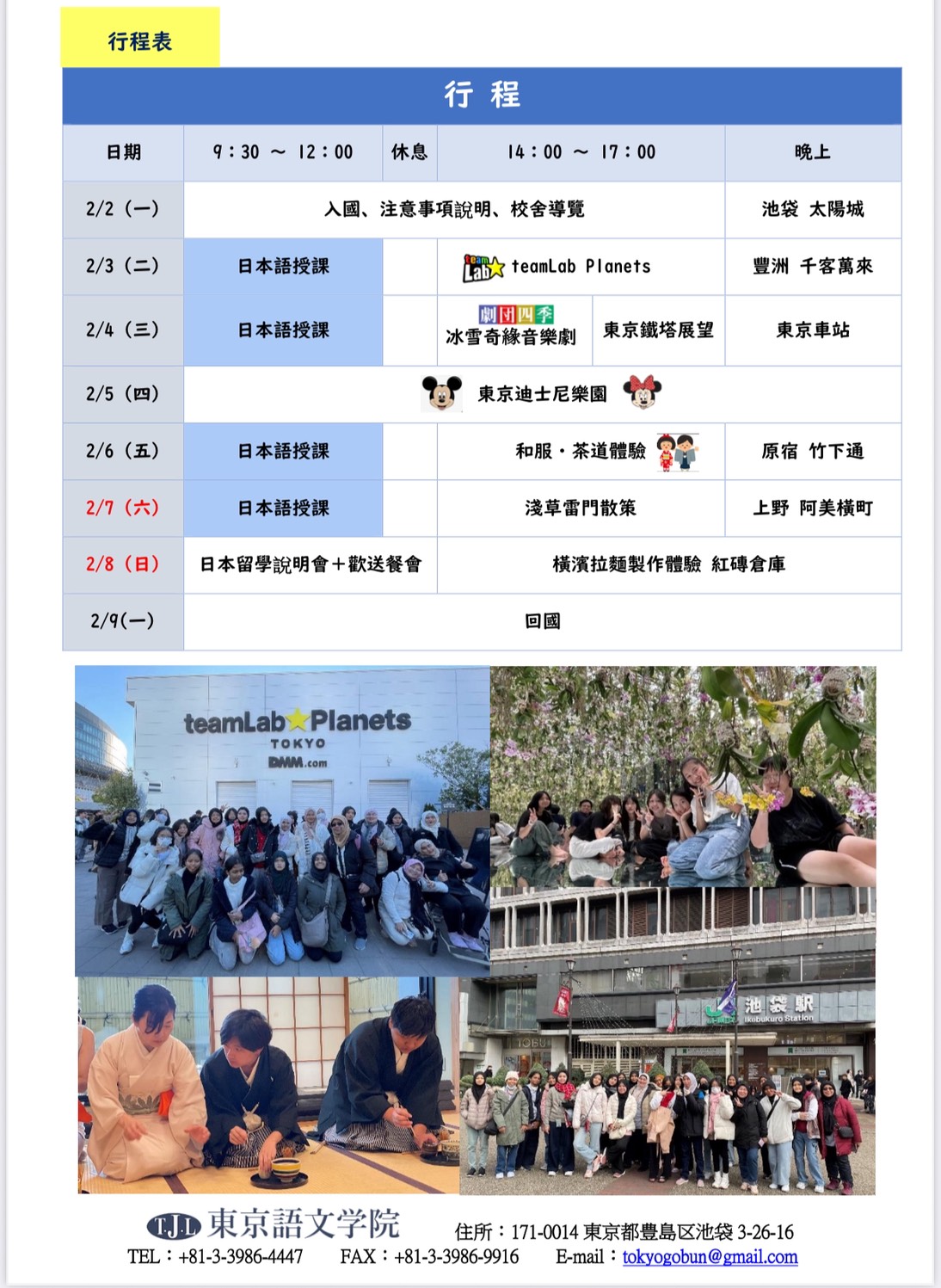 日本東京遊學體驗:115年2/2~2/9(共8天)