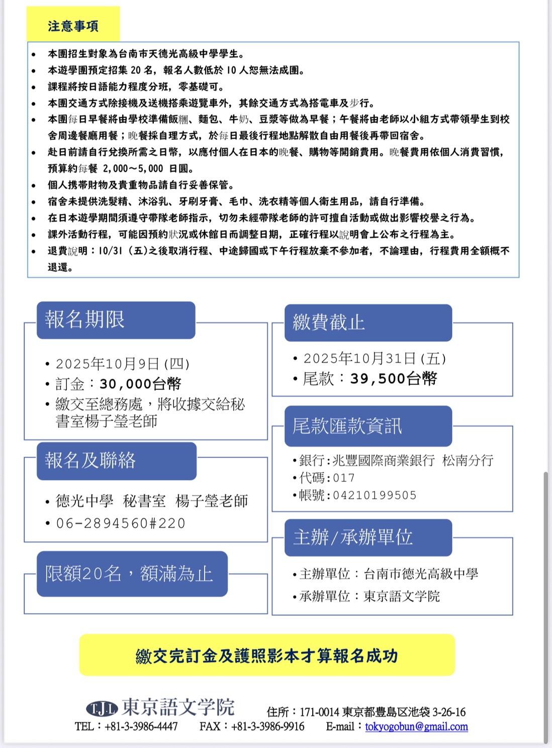 2026寒假遊學團現正熱烈招生中~~每團限額20名,額滿為止!