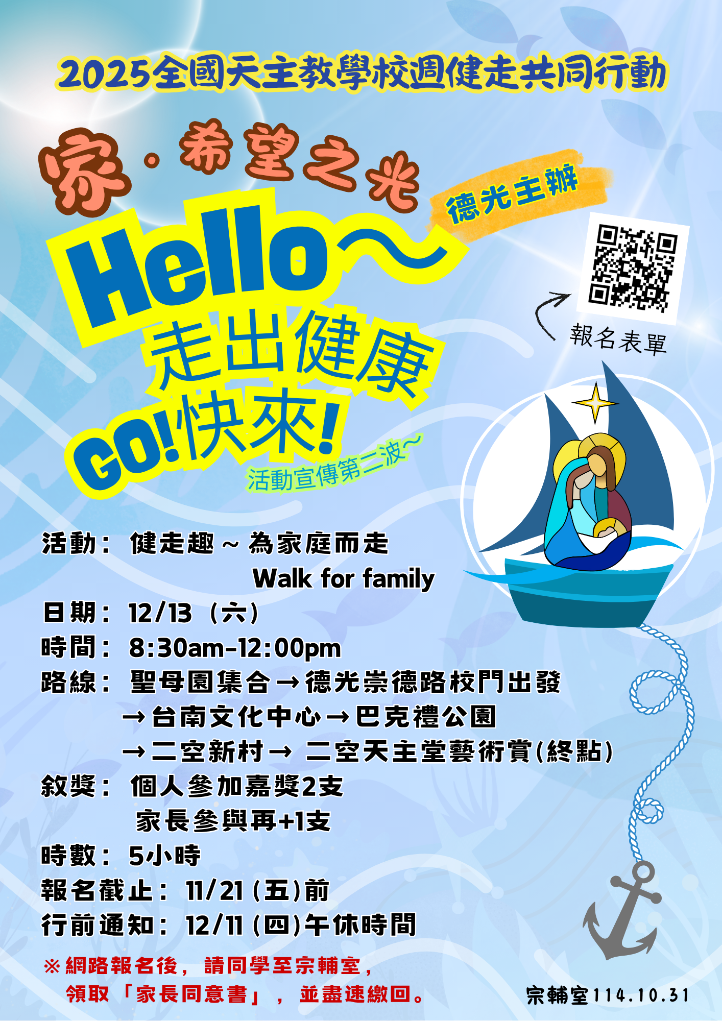 ※請自行至宗輔室領取家長同意書,或自行列印,並盡速繳回!謝謝
