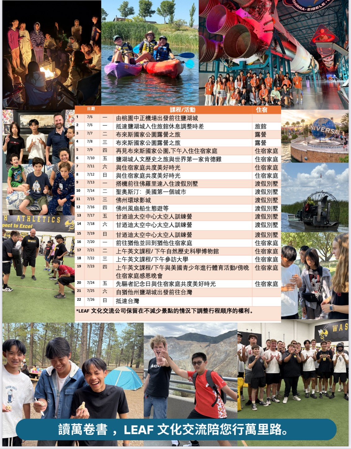 3. 美國Nasa航太猶他州+佛羅里達雙洲文化交流營 | 7月6日~7月26日 |