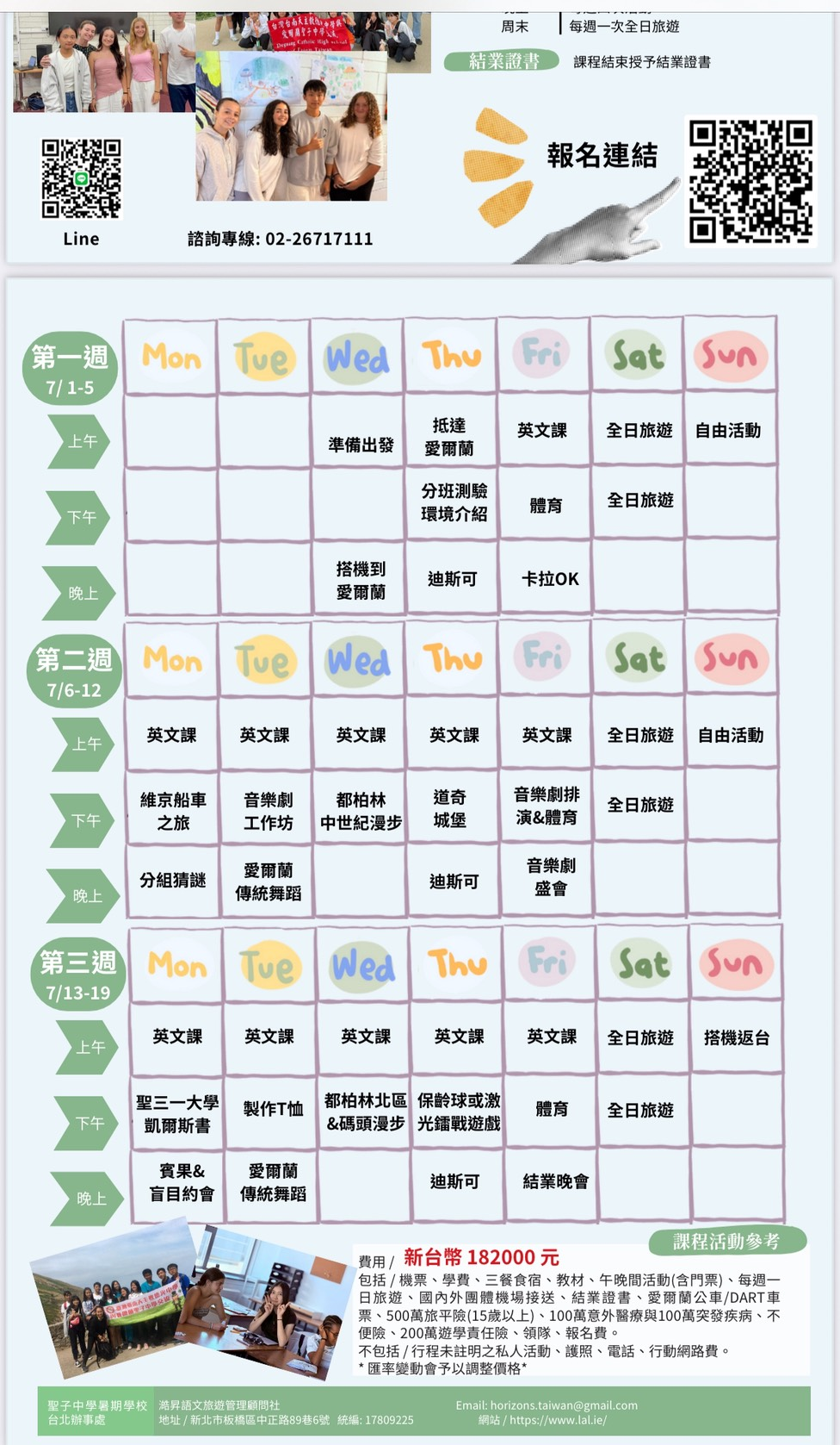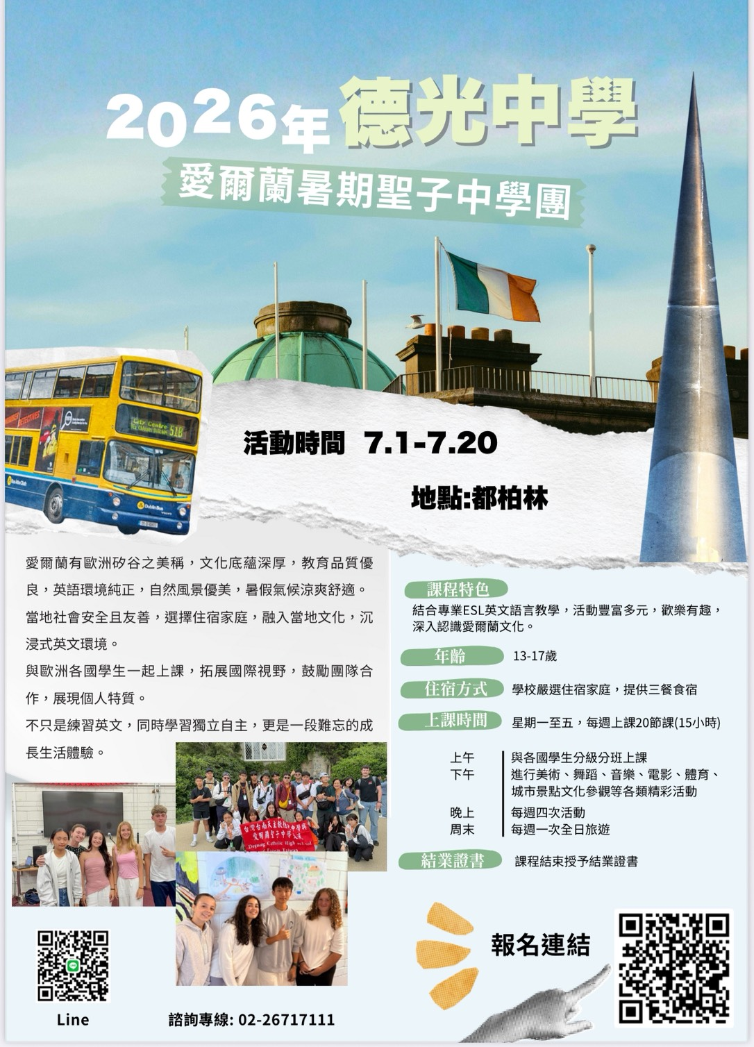 5. 愛爾蘭暑期聖子中學團 | 7月1日~7月20日 |