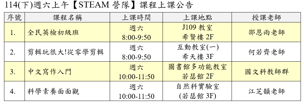 114(下)德光週六【STEAM營隊】開課成功課程公告